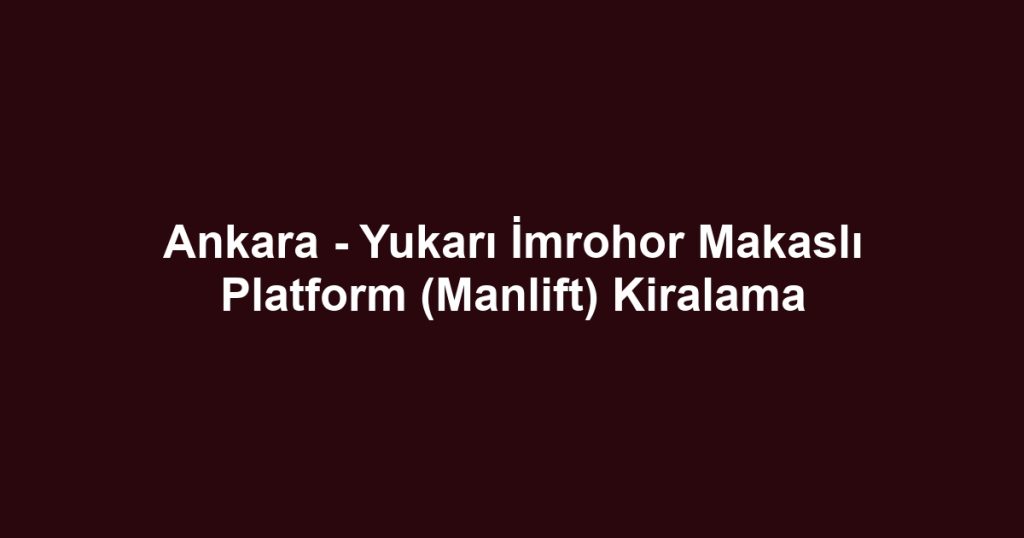 Ankara – Yukarı İmrohor Makaslı Platform (Manlift) Kiralama