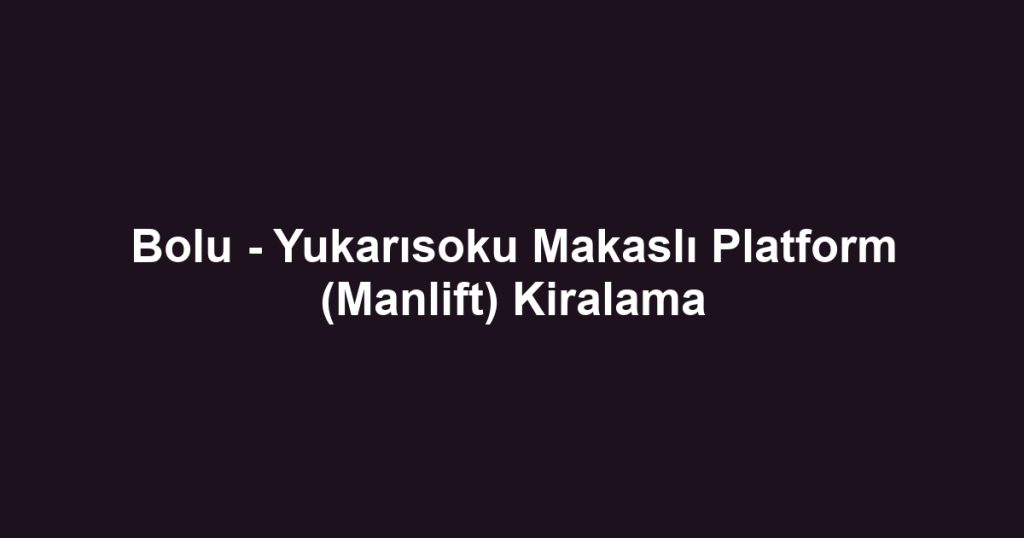 Bolu – Karamanlı Makaslı Platform (Manlift) Kiralama