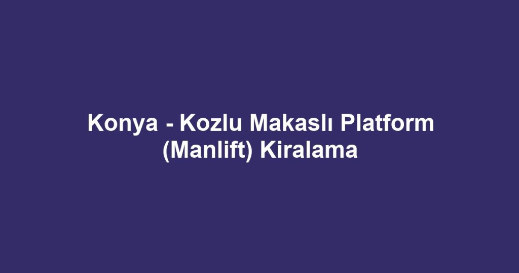 Konya – Kozlu Makaslı Platform (Manlift) Kiralama