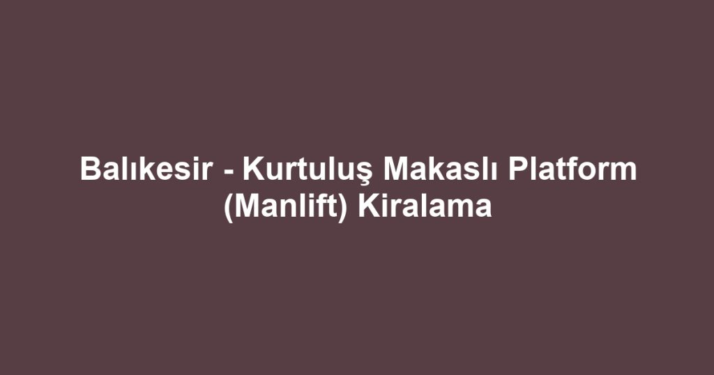 Balıkesir – Kurtuluş Makaslı Platform (Manlift) Kiralama
