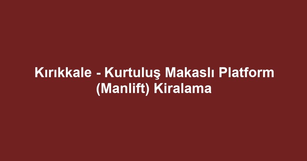 Kırıkkale – Kurtuluş Makaslı Platform (Manlift) Kiralama