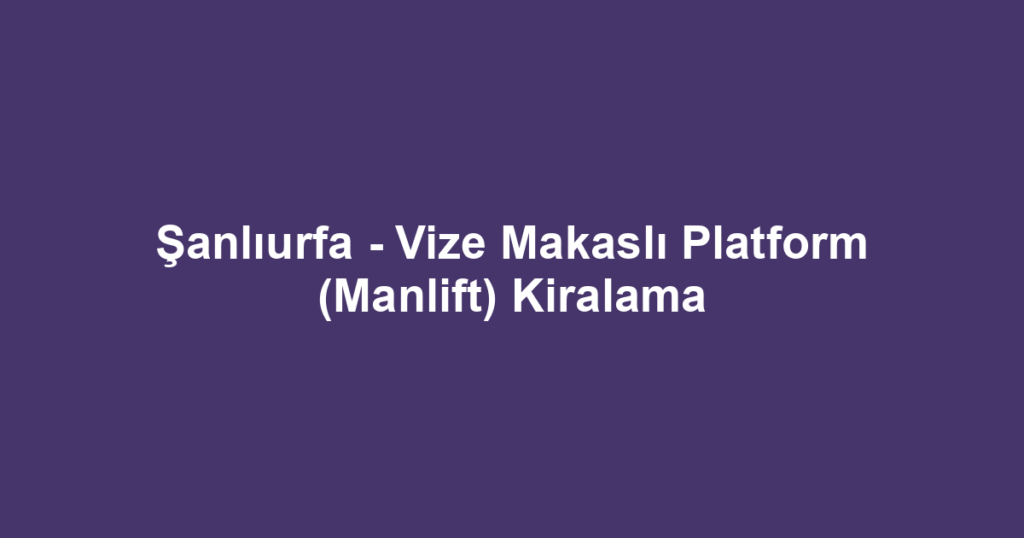 Şanlıurfa – Vize Makaslı Platform (Manlift) Kiralama